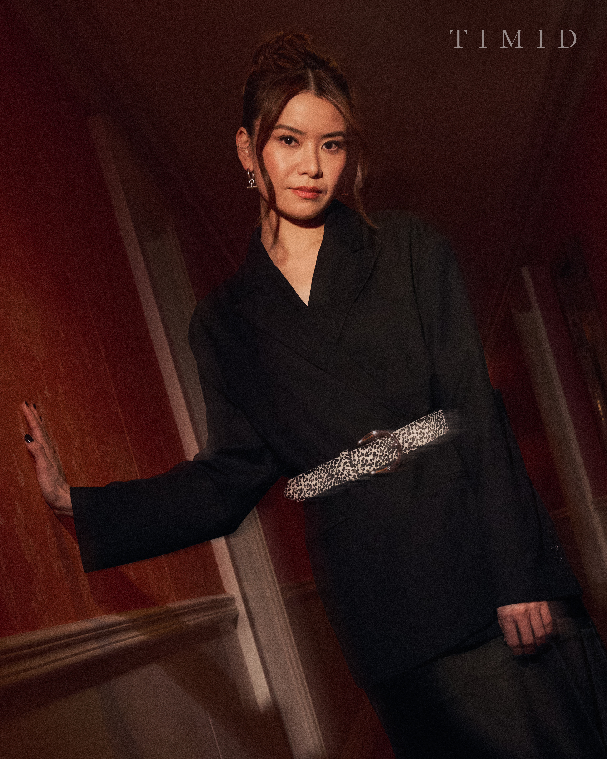 It is precisely this brutal social arithmetic that ossifies Araminta. Leung eschews the "wicked stepmother" trope. “I was blessed with so much nuance,” Leung tells Timid. “It was important to humanize her, not just paint her as a villain we’ve seen time and time again. She has layers that helped me empathize with her decisions.” For Leung, the entry point was the primal instinct of motherhood. “As a mother as well, in real life, I can resonate with the fear of having children, needing to protect them, but not protect them too much, because you want them to learn and to grow.” Araminta’s methods may skew toward control rather than compassion. “She’s a bit more hands-on,” Leung admits with a knowing smile, contrasting it with her own style toward gentler parenting. But the intention, she insists, comes from love. In a society where one misstep can cost a woman everything, Araminta clamps down tighter.