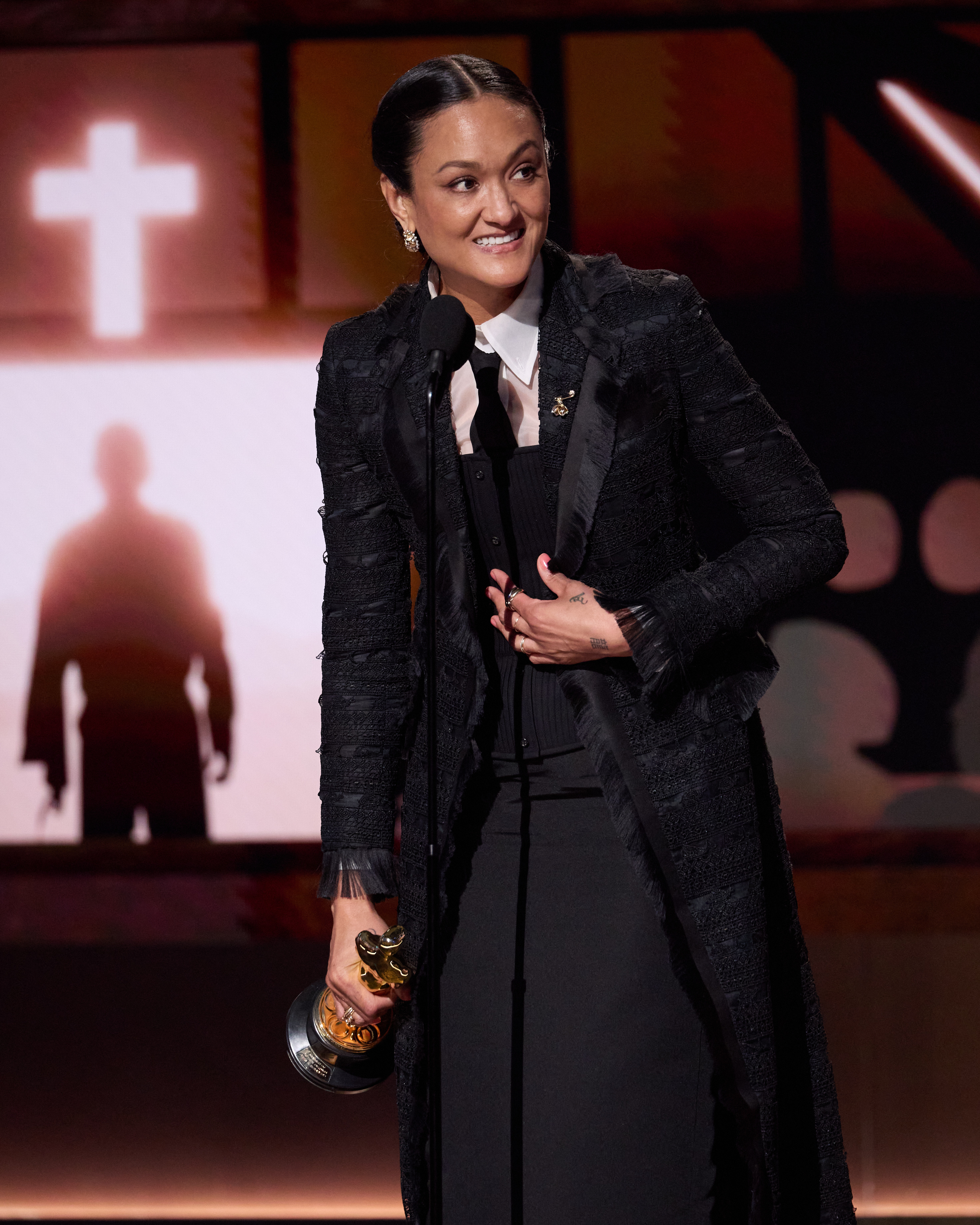 Beyond the atmosphere of the room, I carefully began to draw themes in acceptance speeches, which mostly circled around representation, identity, and contemporary global challenges. Winners like Maggie Kang, following KPop Demon Hunters’ win for Best Animated Feature Film, called on Korea and Koreans, full of gratitude, for taking “so long to win this award.” Representing Timid, I felt pride in seeing her then later walk across the press room stage.